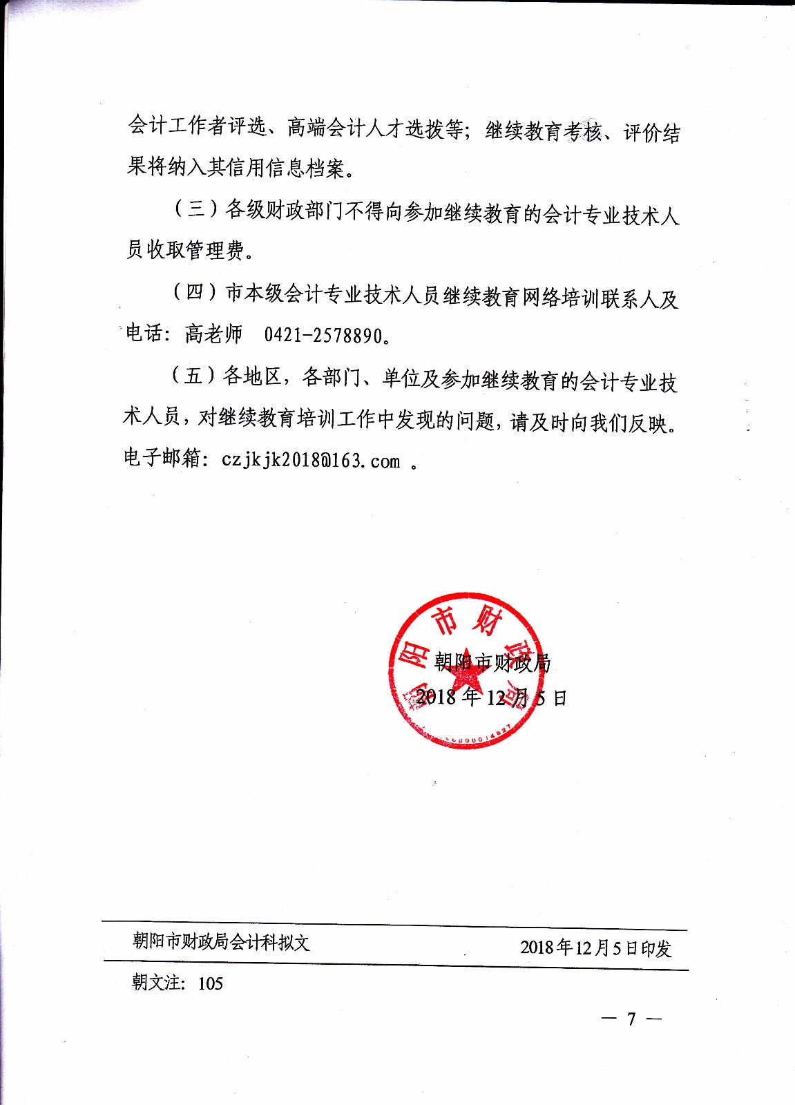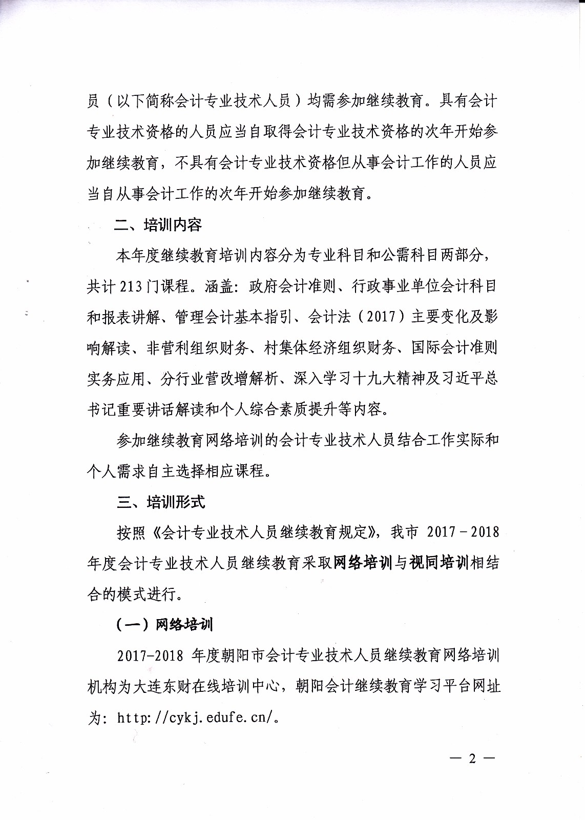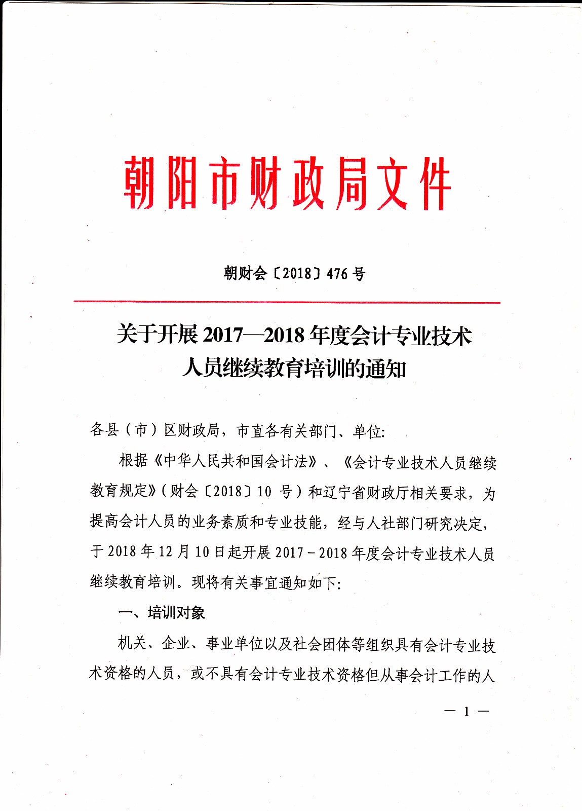 關(guān)于2017-2018年度會(huì)計(jì)專業(yè)技術(shù)人員繼續(xù)教育培訓(xùn)的通知 朝財(cái)會(huì)〔2018〕 476號(hào)